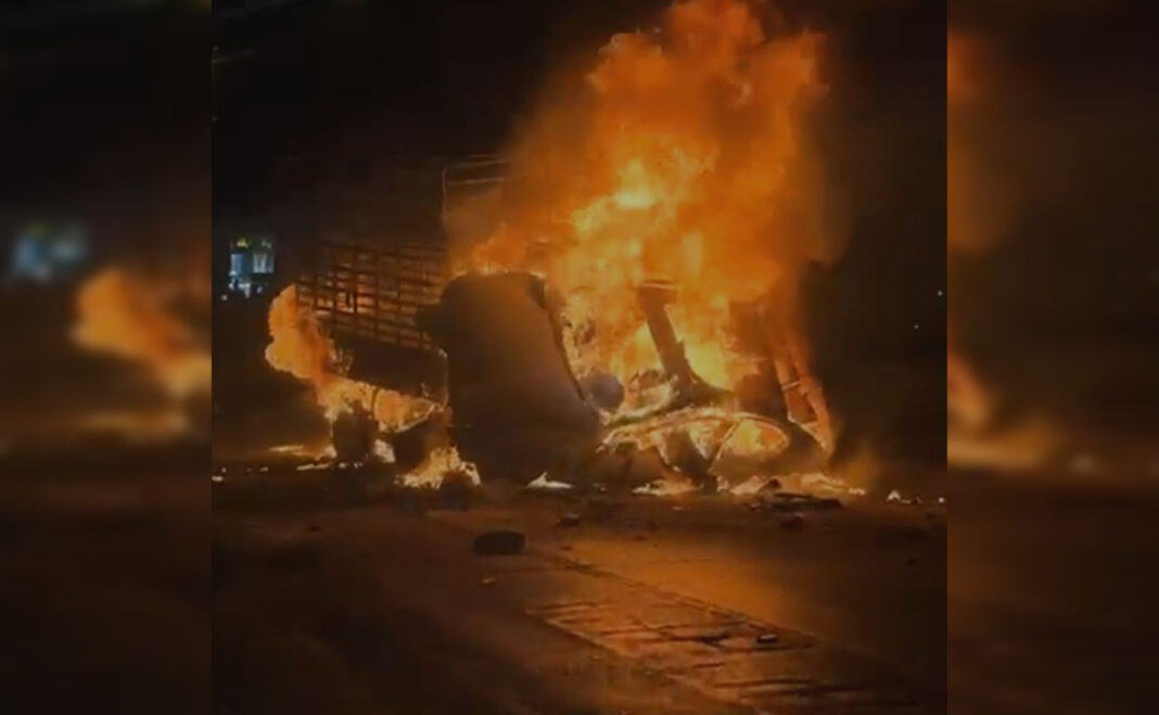 درەنگانی شەوی چوارشەممە، بارهەڵگرێک و ئۆتۆمبێلێکی تایبەت لە نزیک پڕۆژەی ئاسوودە سیتی لە رێگەی هەولێر بۆ کەرکووک بەیەکیاندا دا و ئاگریان گرت.